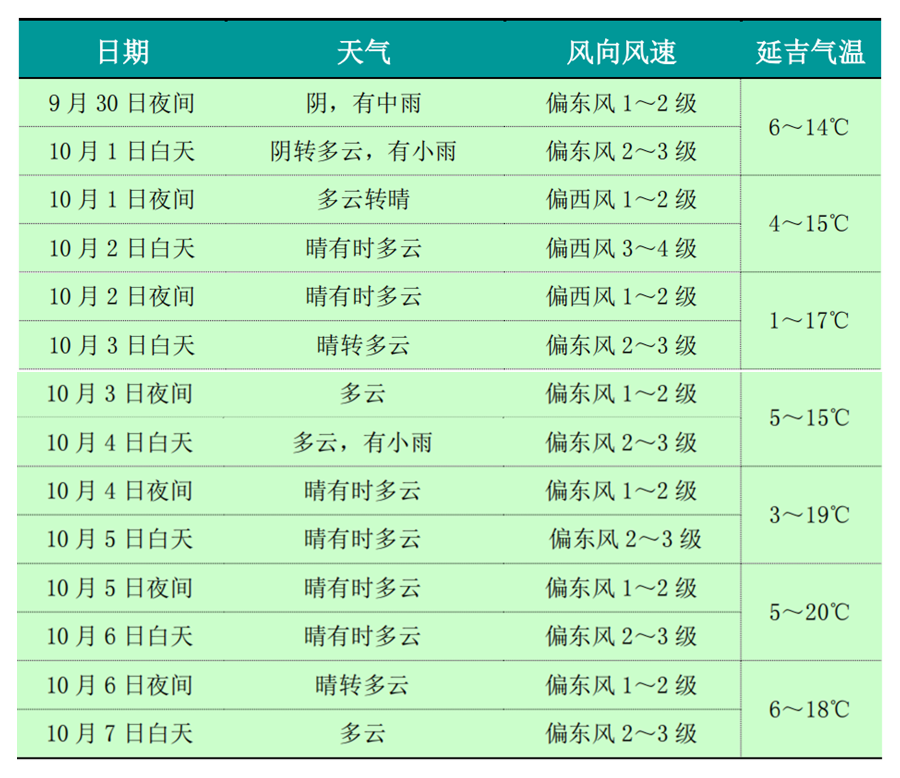 预计节日期间(10月1日-7日)我州天气以晴或多云为主,气温略低,降水偏多。