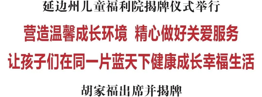 9月29日,延边州儿童福利院揭牌仪式举行。省委常委、州委书记胡家福出席仪式并为延边州儿童福利院揭牌。
