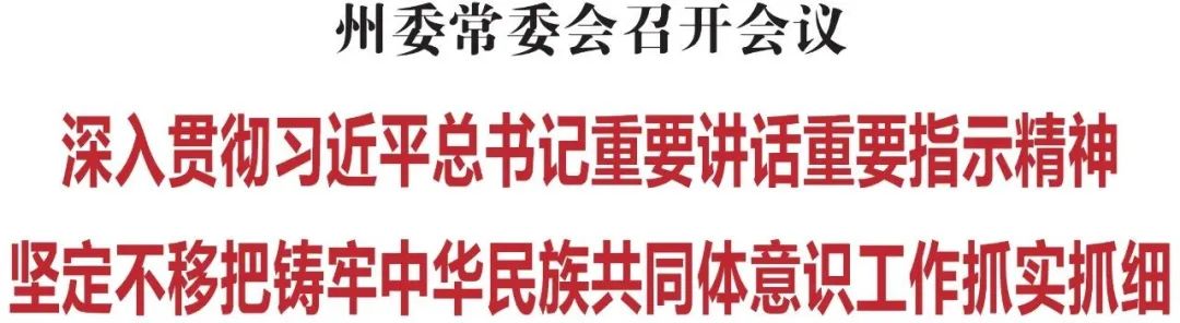 会议指出,习近平总书记在全国民族团结进步表彰大会上的重要讲话,系统总结了新中国成立75年来特别是新时代以来我国民族团结进步事业取得的伟大成就,深刻揭示了中华民族共同体意识形成和发展的根脉和魂脉,明确提出了新时代新征程铸牢中华民族共同体意识、推进中华民族共同体建设的总体要求,为推动新时代党的民族工作高质量发展指明了前进方向、提供了根本遵循。各级党委、政府要更加坚定自觉地把铸牢中华民族共同体意识作为全州各项工作的主线,深入实施“五大工程”,纵深推进“十大行动”,努力使延边民族团结进步事业始终干在实处、走在前列。要坚定不移以党的全面领导引领中华民族共同体意识,健全完善“五个纳入”工作机制,严格落实“四个第一”政治要求,深入推进铸牢中华民族共同体意识工作职责法定化,不断深化铸牢中华民族共同体意识宣传教育,推动各项工作向铸牢中华民族共同体意识主线聚焦用力。要坚定不移以高度文化认同浸润中华民族共同体意识,深入实施文化浸润工程,大力推广普及国家通用语言文字,全面推行使用国家统编教材,大力推进标志标识标牌规范工作,进一步树立和突出各民族共有共享的中华文化符号和中华民族形象,不断增强各族群众对中华文化的认同。要坚定不移以促进共同富裕凝聚中华民族共同体意识,准确把握延边发展阶段性特征,聚力发展“十大产业集群”,加快培育“五新产业”,深入实施绿美延吉、城市更新等重大民生工程,持续提升教育、医疗、养老等领域公共服务水平,不断满足各族群众对美好生活的向往。要坚定不移以深化互嵌共融增进中华民族共同体意识,深入推进铸牢中华民族共同体意识“三共四同”互嵌式社区建设,不断优化“一核八翼”全域体验区功能,创新开展民族团结进步创建工作“七+N进”活动,推动各民族在空间、文化、经济、社会、心理等方面全方位嵌入。要坚定不移以防范化解风险保障中华民族共同体意识,依法保障各族群众合法权益,严厉打击各类渗透颠覆破坏活动,筑牢维护国家安全的铜墙铁壁。