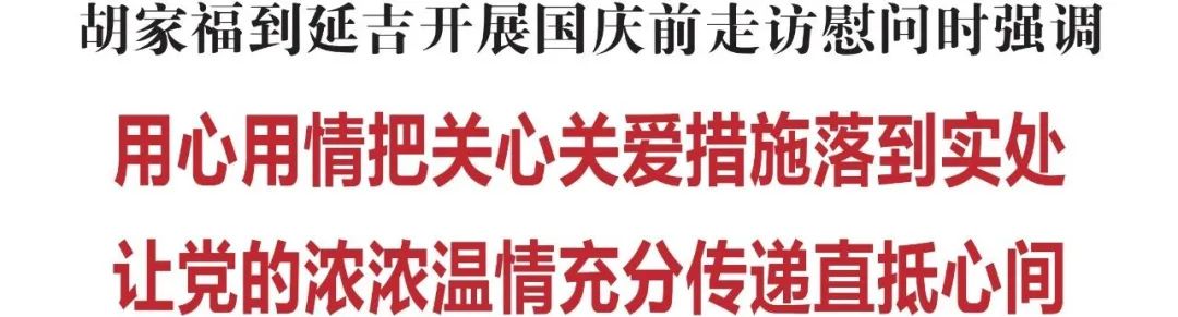 在喜迎新中国75周年华诞之际,省委常委、州委书记胡家福在延吉市走访慰问烈士遗属、全国优秀党务工作者、州级老同志,代表州委、州政府向他们致以节日的问候、表示崇高的敬意,感谢他们的辛劳和奉献,为他们送去党的关怀和温暖。