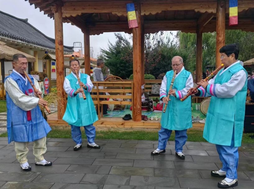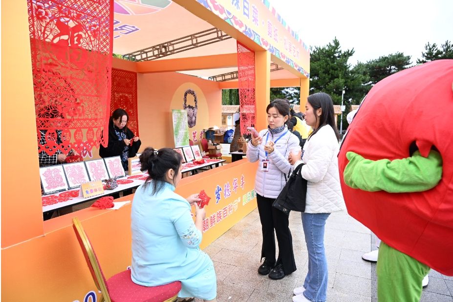 本次活动在祈丰祭表演中拉开序幕,表演者们穿上节日盛装,载歌载舞,将秋季的收获与幸福、激情与希望以歌舞的形式一一呈现,展现出朝鲜族传统农耕文化和新时代农民的时代风采、文化自信。在“百种村落”非遗体验区,一间间民宿被打造成各具特色的主题体验馆,游客通过体验吹奏洞箫、弹奏伽倻琴、打打糕、搓玉米、玩画图等活动,深入了解农耕文化,感受朝鲜族文化精髓。土豆饼、江米鸡、米肠……在“百味延边”展示区,色泽鲜艳、味道鲜美的朝鲜族民俗菜品令人垂涎欲滴,游客们寻味而至,共同探寻延边美食精粹,品味舌尖上的民族文化。