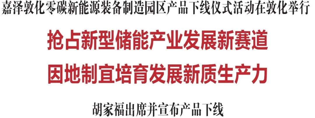 活动开始前,胡家福首先走进园区,实地参观PACK生产线、产品展厅,详细了解企业生产运行、制作工艺及产能产值等情况。胡家福指出,此次嘉泽敦化零碳新能源装备制造园区产品下线,是我州推进新型储能产业发展进程中的一个重要里程碑,对于我州加快发展新型储能产业、因地制宜培育发展新质生产力具有标志性意义,必将为推动延边振兴发展、加快实现跨越赶超注入强劲动能。希望企业以此次产品下线为契机,充分发挥企业在制造、技术、市场等方面优势,精心做好园区的建设、运营和管理,精准对接市场需求变化,敏锐把握技术发展趋势,全力以赴做精业务、做优产品、做大规模,以企业的大踏步发展助力延边打造新型储能产业发展新高地。州市两级党委、政府将一如既往地秉承“重商、亲商、安商、富商”的理念,竭诚为企业提供全方位、高效率、有温度的优质服务,携手开创互利共赢美好未来。