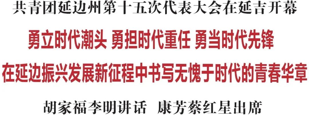 12月19日,共青团延边州第十五次代表大会在延吉开幕。省委常委、州委书记胡家福,共青团吉林省委书记李明出席开幕式并讲话。州政协主席康芳、州人大常委会党组书记蔡红星出席开幕式。