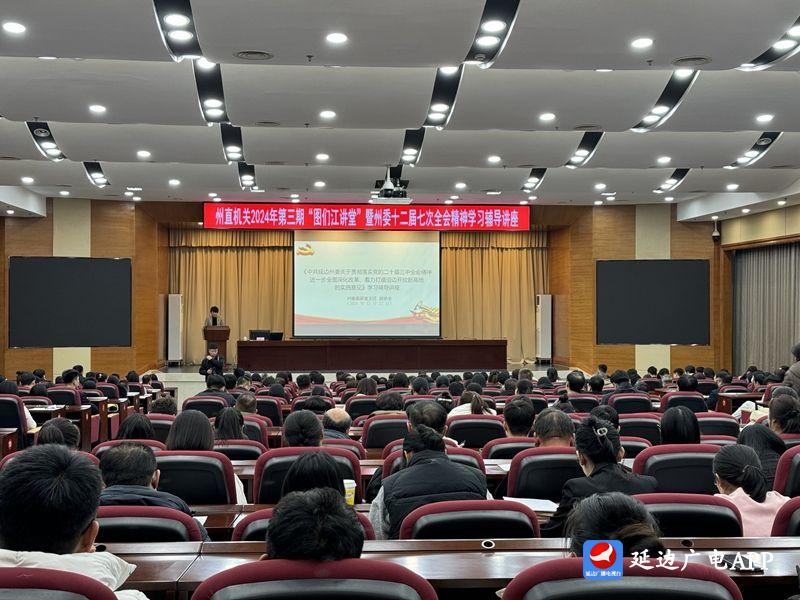 12月27日,州直机关工委在州政务中心举办2024年第三期“图们江讲堂”暨州委十二届七次全会精神学习辅导讲座。