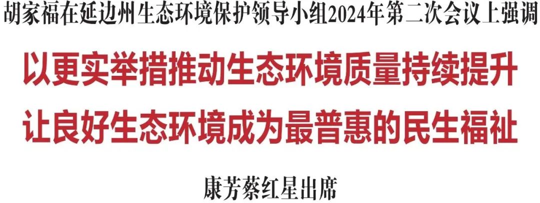 12月27日,延边州生态环境保护领导小组2024年第二次会议在延吉召开。省委常委、州委书记、州生态环境保护领导小组组长胡家福主持会议并讲话。他强调,要深入贯彻习近平生态文明思想,按照中央和省委的部署要求,坚决扛起维护区域生态安全的重大政治责任,以更实举措推动生态环境质量持续提升,让良好生态环境成为最普惠的民生福祉。州政协主席康芳、州人大常委会党组书记蔡红星出席会议。