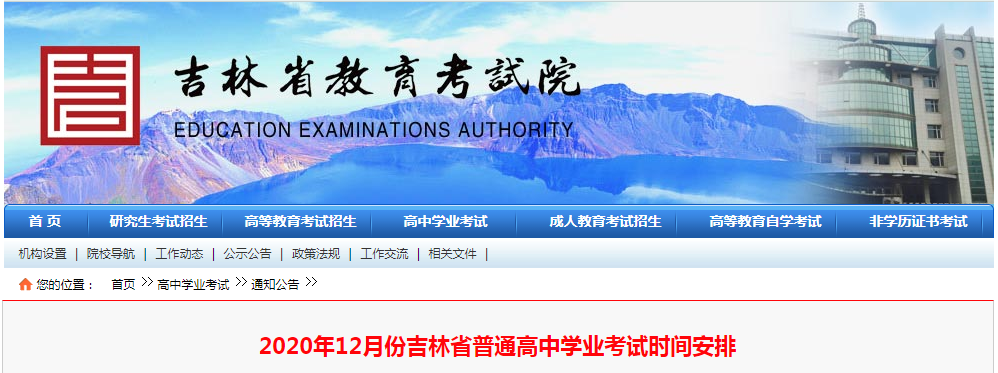 10月15日 吉林省教育考试院公布 2020年12月份 吉林省普通高中学业考试时间安排