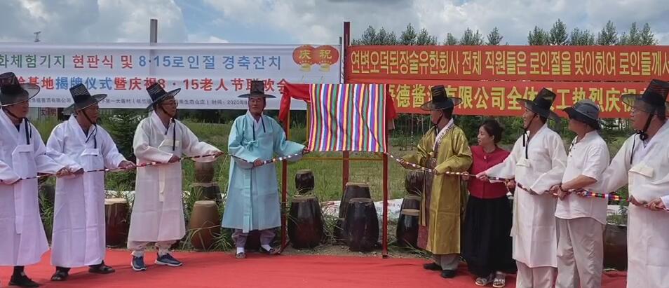 今日,由延边中华文化促进会、延边生态文化协会联合举办的“中国朝鲜族传统大酱文化体验基地”揭牌仪式暨庆祝延边8·15老人节联欢会在延吉举行