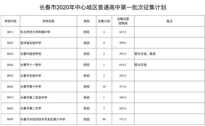 长春市2020年中考中心城区普通高中第一批次录取结果、征集计划和志愿发布