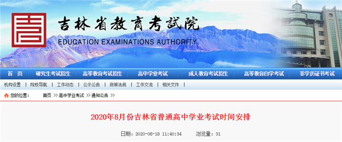 确定了!2020年8月份吉林省普通高中学业考试时间安排