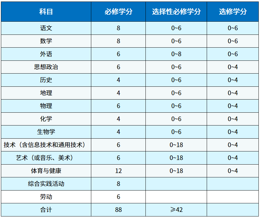 最后,方案合理确定了各类课程学分比例,在毕业总学分不变的情况下,对原必修课程学分进行重构,由必修课程学分、选择性必修课程学分组成,适当增加选修课程学分,既保证基础性又兼顾选择性
