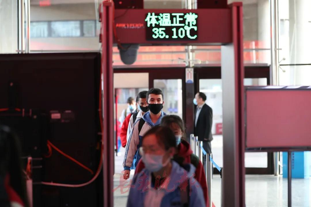今天是珲春市高三年级开学第一天,早上7点钟左右,记者在珲春市第一高级中学大门前看到,高三学生们正有序排队入校,学校在校门设置了3个测温门,设置了15个独立观察室