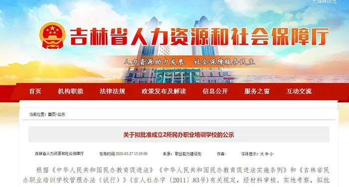 根据《中华人民共和国民办教育促进法》《中华人民共和国民办教育促进法实施条例》和《吉林省民办职业培训学校管理办法(试行)》(吉人社办字〔2011〕83号)有关规定,经材料审核、实地考察,拟批准成立吉林省爱贝佳职业技能培训学校有限公司、吉林省吉美职业技能...