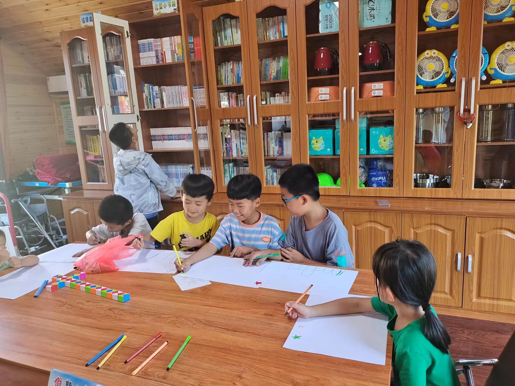 在老师的安排下,孩子们聚精会神地在小木屋里画起乡村振兴的美丽图景