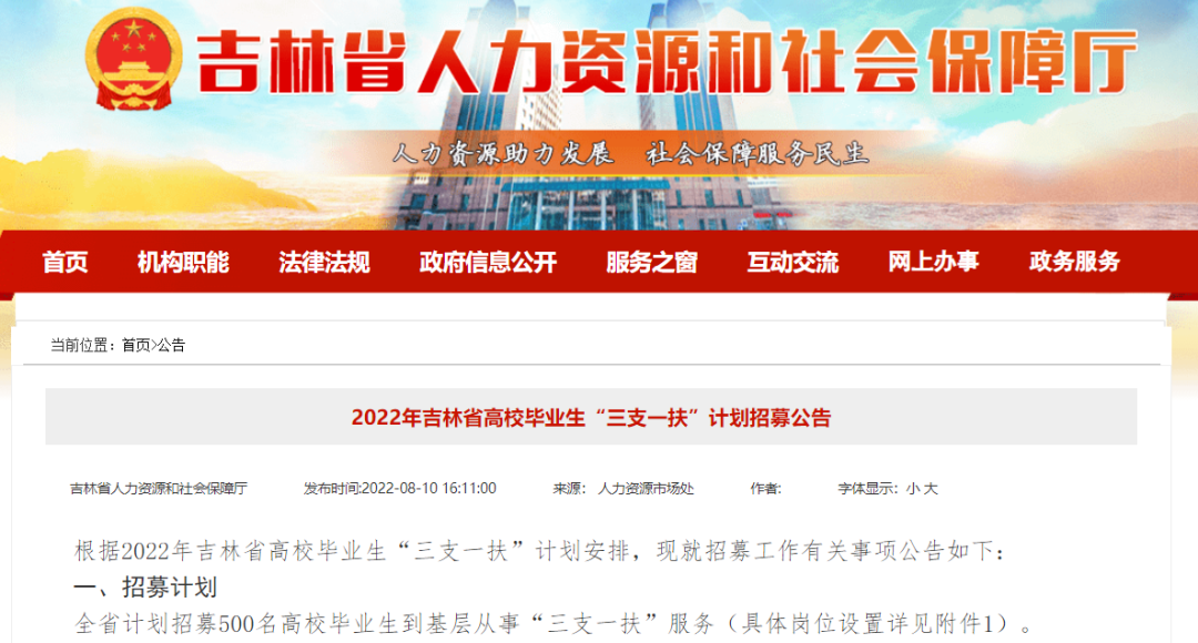 2022年吉林省高校毕业生“三支一扶”计划招募公告
