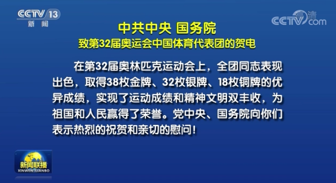 中共中央 国务院致第32届奥运会中国体育代表团的贺电