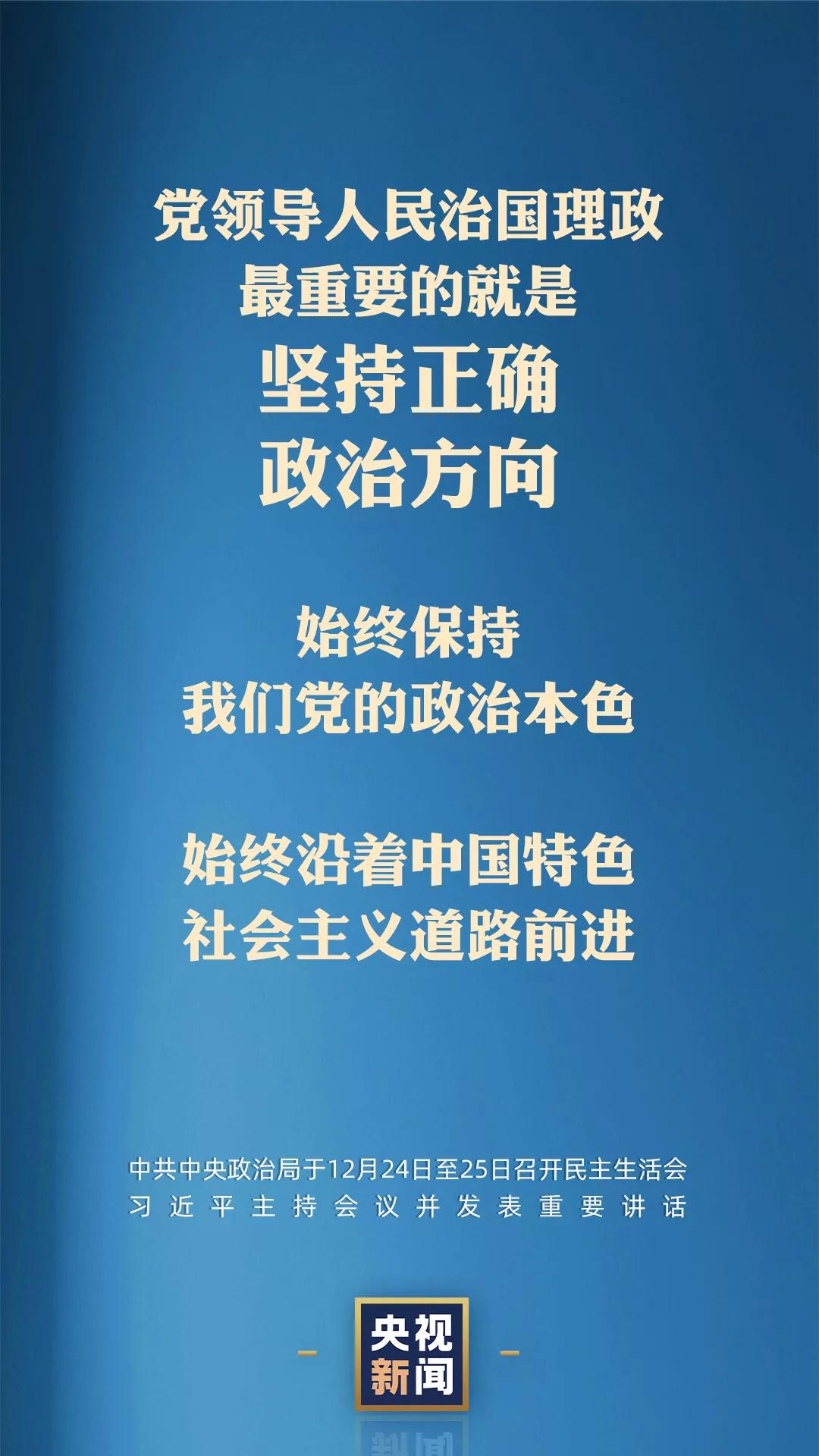 12月24日至25日,中共中央政治局召开民主生活会,中共中央总书记习近平主持会议并发表重要讲话