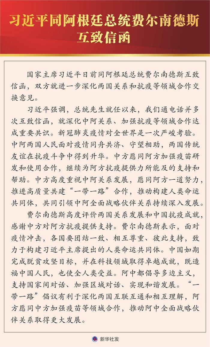 费尔南德斯高度评价两国关系发展和中国抗疫成就,感谢中方对阿方抗疫提供支持
