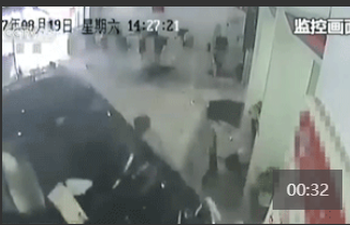 8月19日,重庆涪陵区一名司机右转时错把油门当成刹车,带倒了路旁一名行人后,一头撞入一家银行的大厅。所幸事故只造成司机轻伤并无其它人员伤亡。