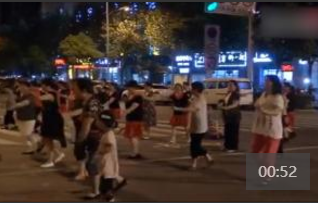 8月16日,安徽合肥龙图路与潜口路交叉口,一群广场舞大妈在马路上跳舞。对于来往车辆,大妈表示车子“不敢撞他们”。