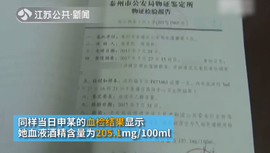 江苏泰州女子申某因配合警方调查一起冲突案件,开车去派出所,被民警发现其酒后驾车。经血检,申某血液中的酒精含量数值超酒驾标准10倍,刷新当地女司机酒驾之最记录。