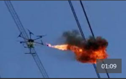 2017年8月16日,上海沪青平公路附近,电网工作人员首次应用喷火无人机,清除高压线上的异物。整个过程持续约20分钟。