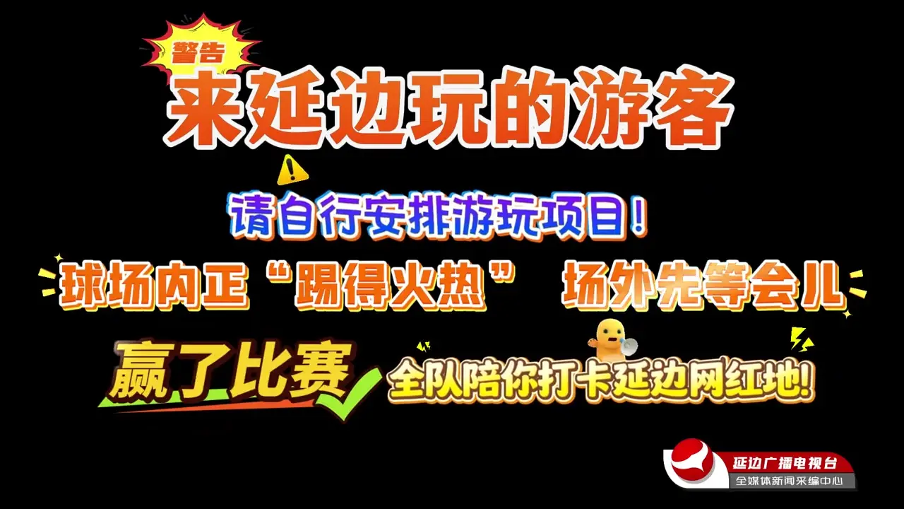 警告 来延边玩的游客:请自行安排游玩项目!球场内正 “踢得火热”,场外先等会儿,赢了比赛,全队陪你打卡延边网红地!