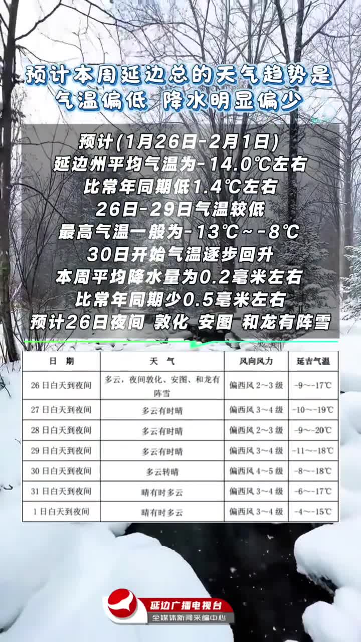 预计本周延边总的天气趋势是气温偏低 降水明显偏少