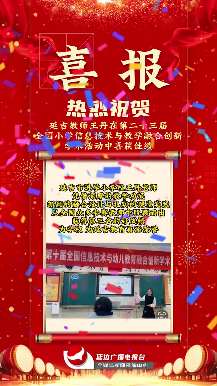 延吉教师王丹在第二十三届全国小学信息技术与教学融合创新 学术活动中喜获佳绩