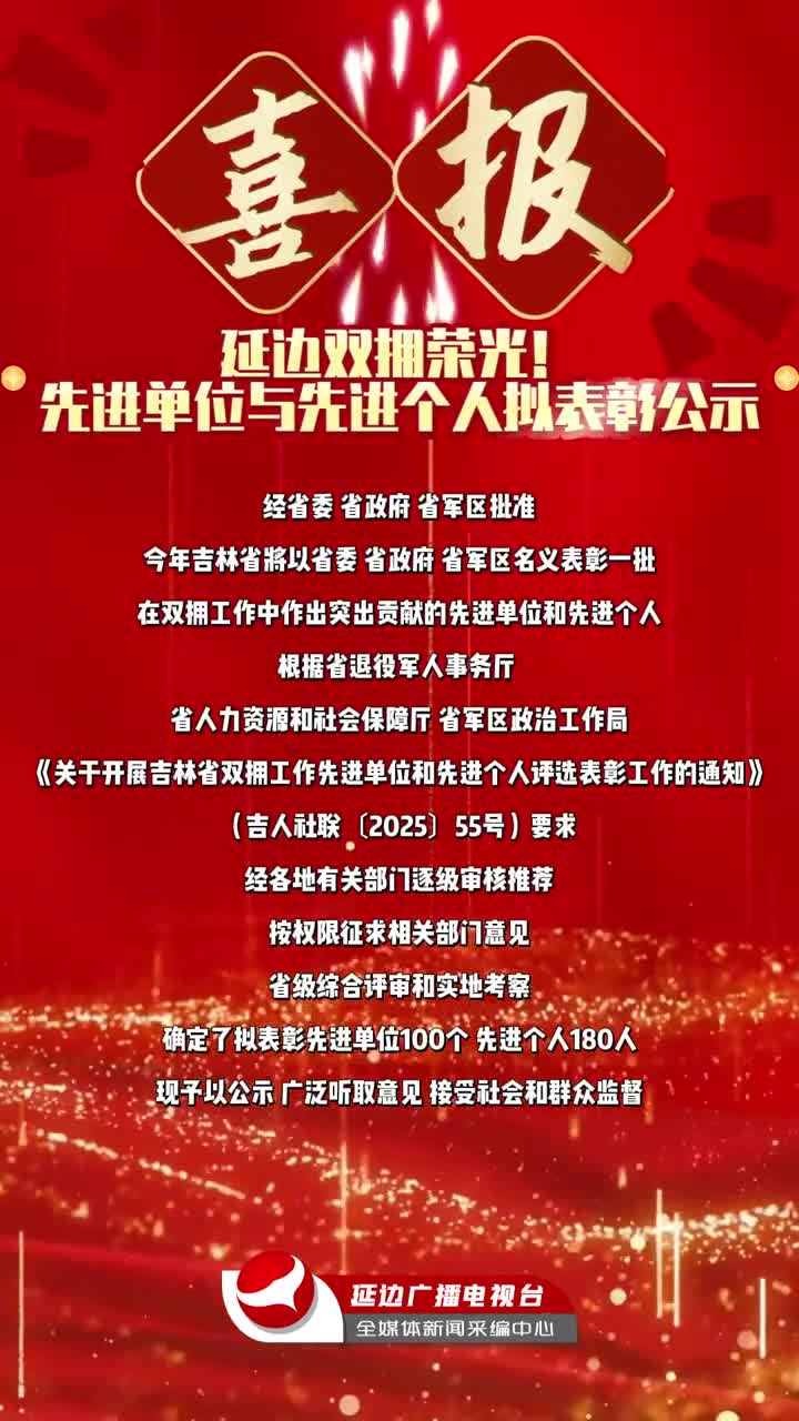 喜报!延边双拥荣光!先进单位与先进个人拟表彰公示