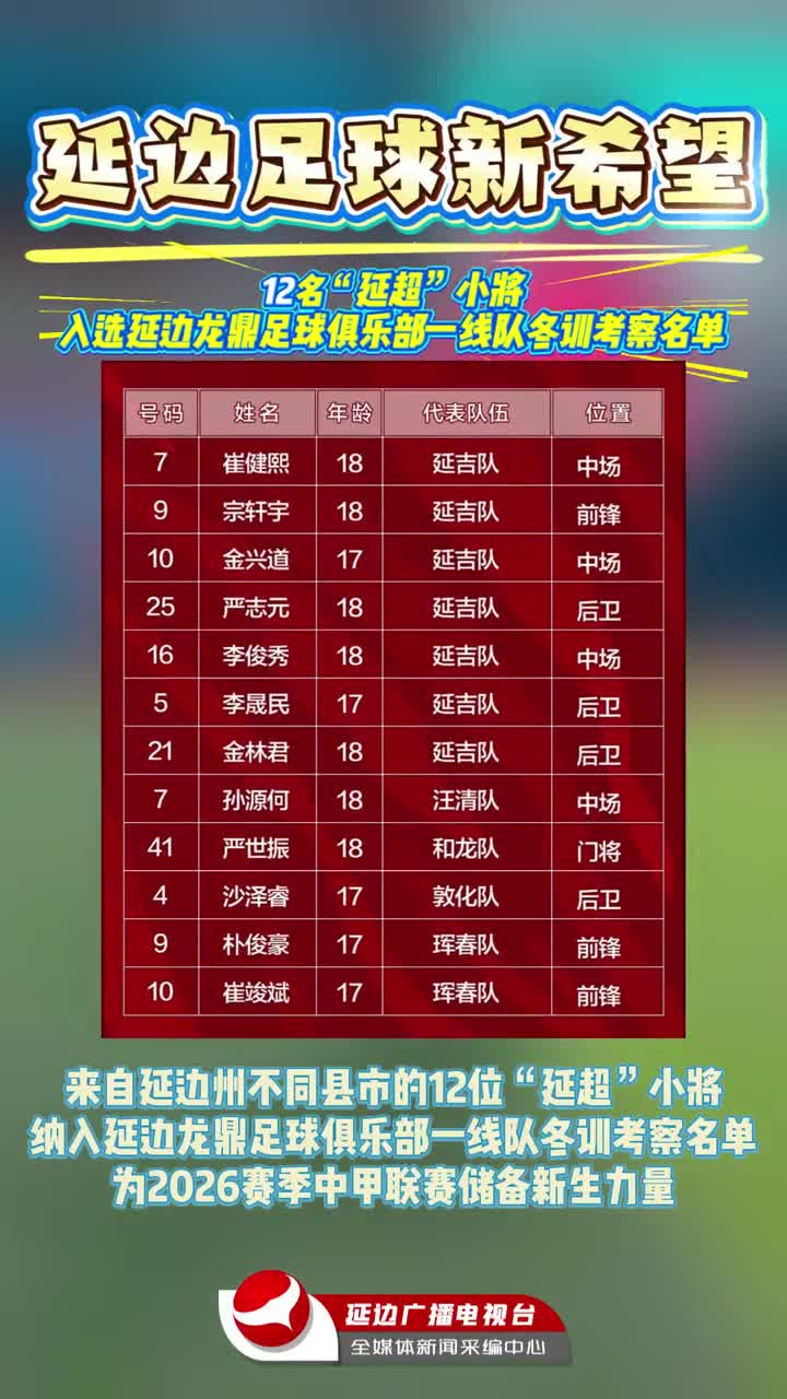 延边足球新希望 12名“延超”小将入选延边龙鼎足球俱乐部一线队冬训考察名单