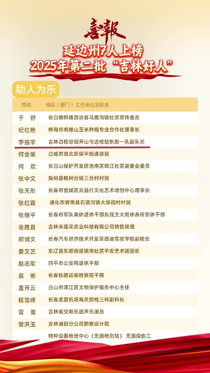 喜报 延边州7人上榜2025年第二批“吉林好人”