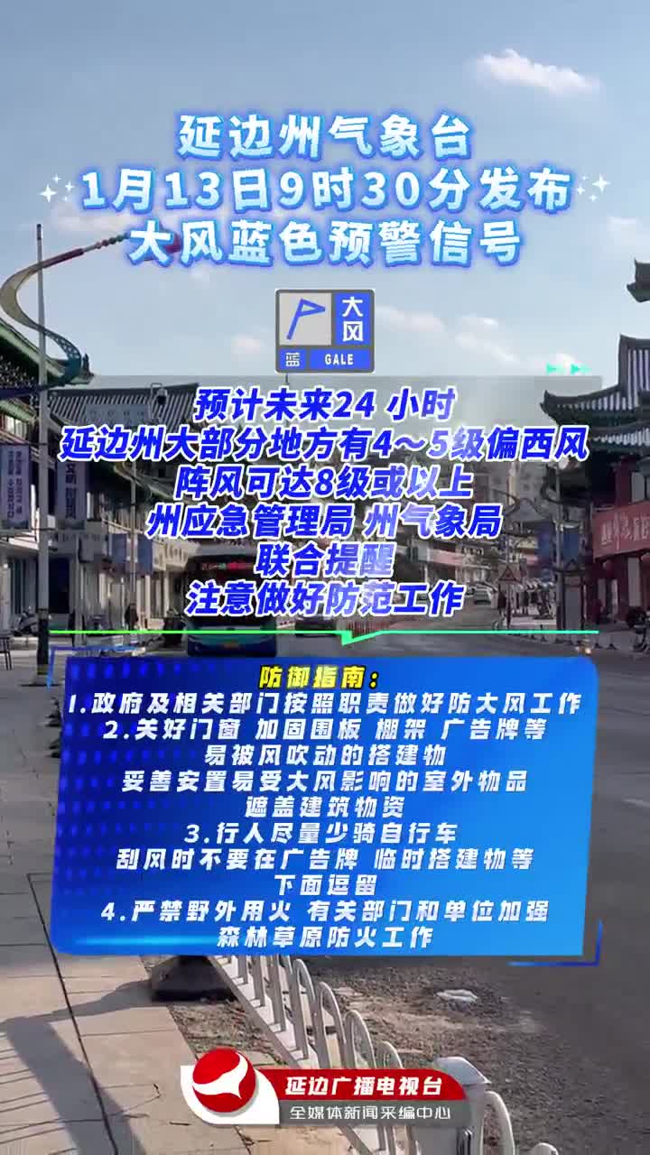 延边州气象台 1 月 13 日9 时30 分发布 大风蓝色预警信号