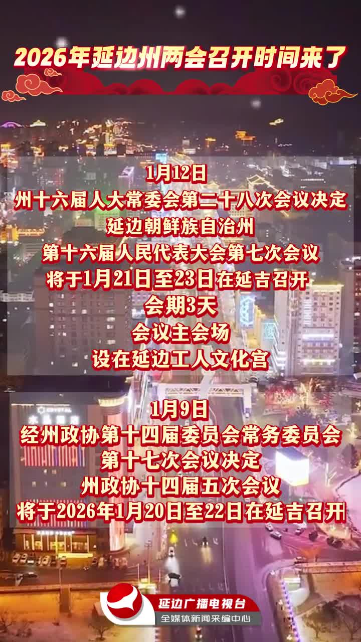 2026年延边州两会召开时间来了!
