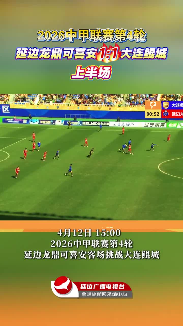 2026中甲联赛第4轮 上半场 延边龙鼎可喜安1:1大连鲲城