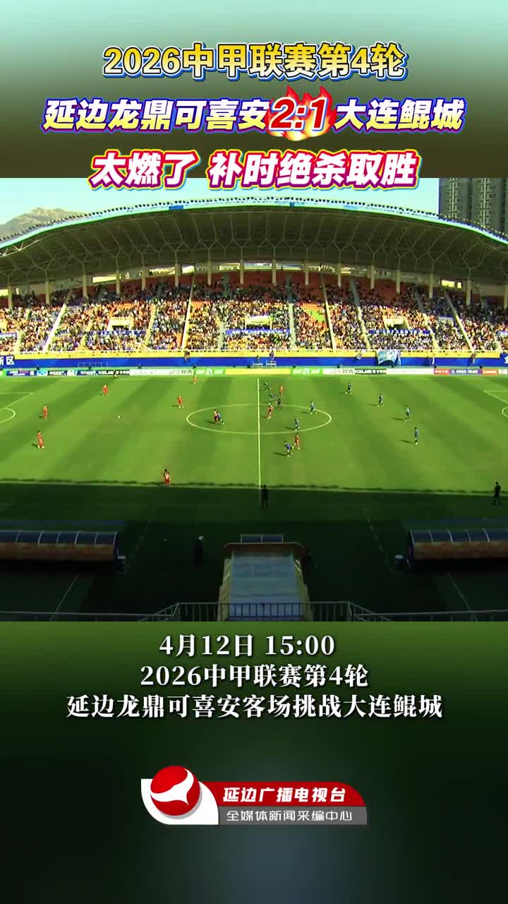 2026中甲联赛第4轮 延边龙鼎可喜安2:1大连鲲城 太燃了 补时绝杀取胜