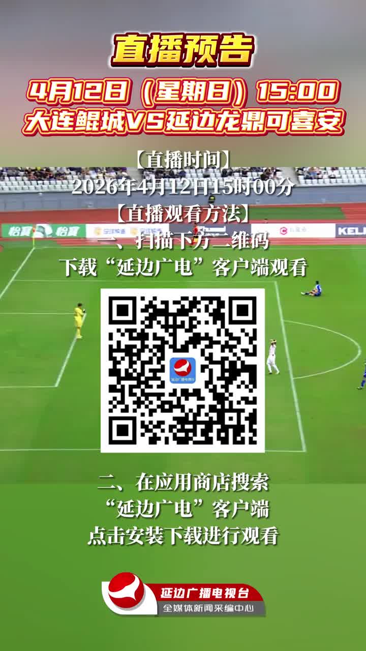 直播预告 4月12日(星期日)15:00 大连鲲城VS延边龙鼎可喜安