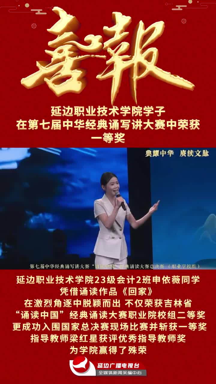 喜报!延边职业技术学院学子在第七届中华经典诵写讲大赛中荣获一等奖