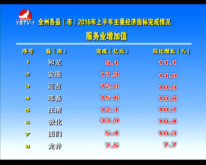 全州各县(市) 2016年上半年主要经济指标完成情况