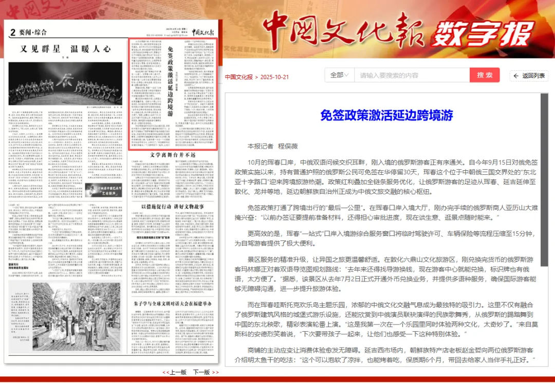 中国文化报:免签政策激活延边跨境游