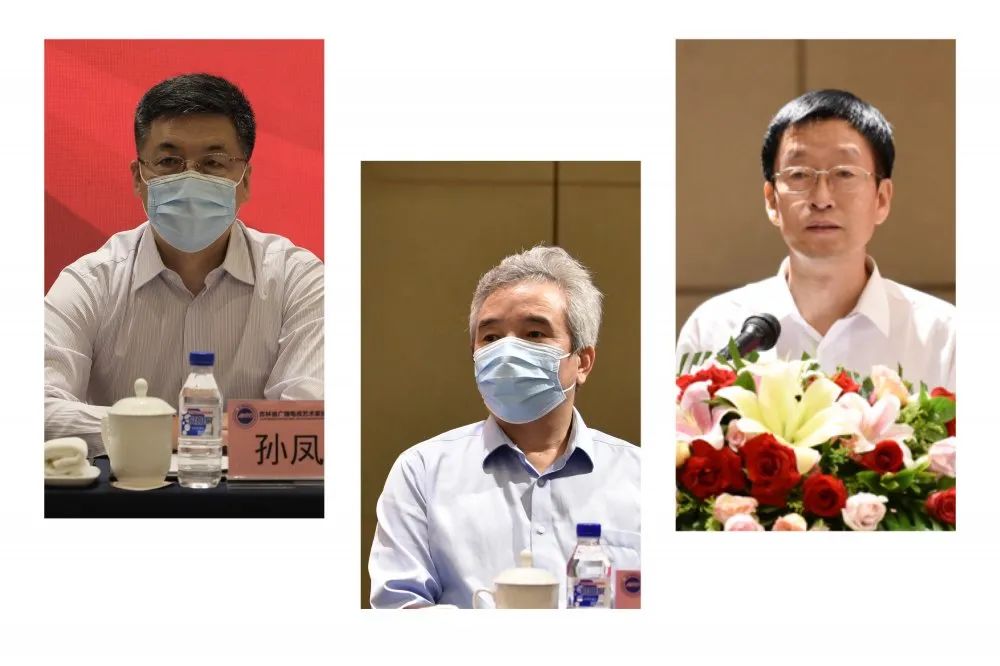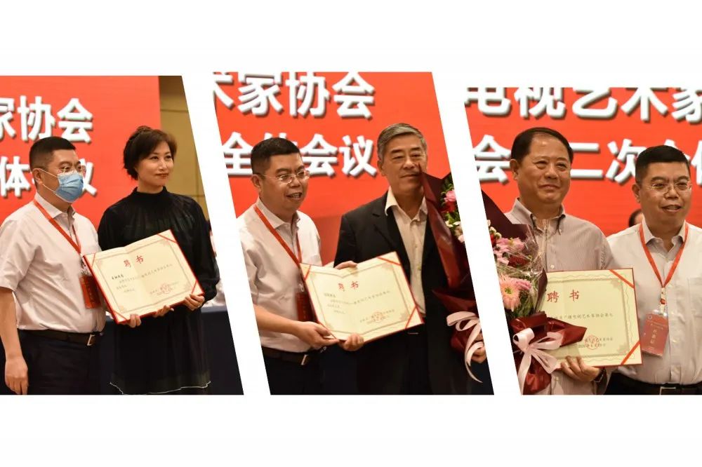 (由左至右:省广播电视艺术家协会第六届主席团主席冯晨、副主席宋江波、王融出席大会)