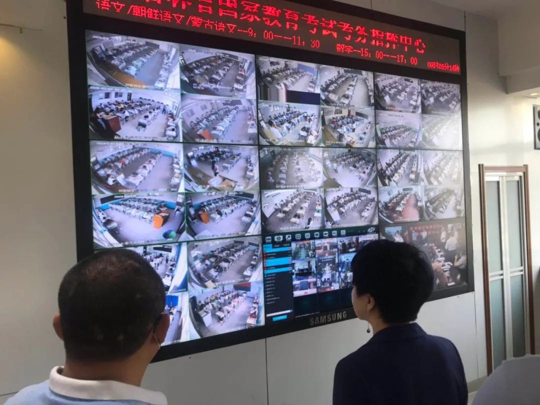 7日上午,记者在位于吉林省教育考试院的省国家教育考试考务指挥中心看到,几十块液晶屏幕正轮番切换,显示着全省各考场的实时监控画面。从画面中,我们可以清楚的看到考场中每个人的一举一动。