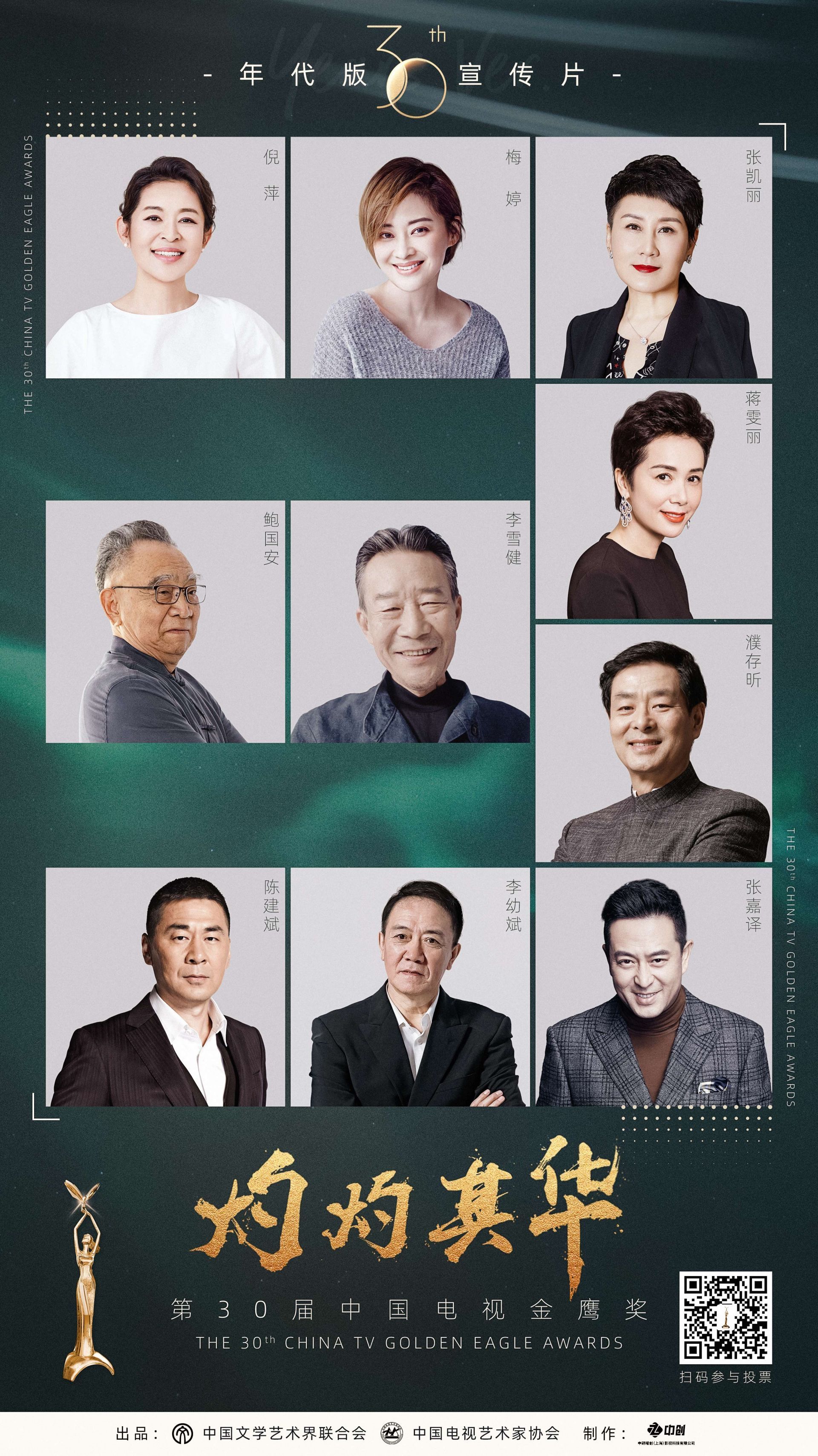 中国文联、中国视协全新制作发布了第30届中国电视金鹰奖宣传片《灼灼其华》和青春版宣传片《风华正茂》。在视频短片《灼灼其华》中,李雪健、鲍国安、濮存昕、李幼斌、陈建斌、张嘉译、倪萍、张凯丽、蒋雯丽、梅婷等10位金鹰奖获得者通过与自己曾经扮演过的角色时空对话,回望金鹰的峥嵘岁月,更对中国电视的未来充满希冀;视频短片《风华正茂》则表达了张若昀、王鸥、宋祖儿、吴谨言、许凯、曾舜晞、李一桐、谷嘉诚、李兰迪、赵露思、鞠婧祎、荣梓杉等12位青年演员在表演过程中的不断找寻和自我蜕变,展现他们义无反顾实现艺术梦想的决心。