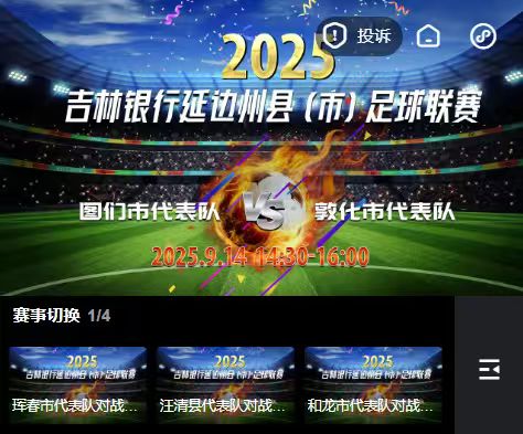 无需频繁切换频道,不用纠结错过哪场 ——9 月14日14:30,2025 吉林银行延边州县(市)足球联赛四场焦点战同步开踢,延边广电 “一键四屏” 观赛黑科技正式上线,打破传统观赛局限,让全州球迷一站式锁定所有县域足球对决,沉浸式感受绿茵激情。