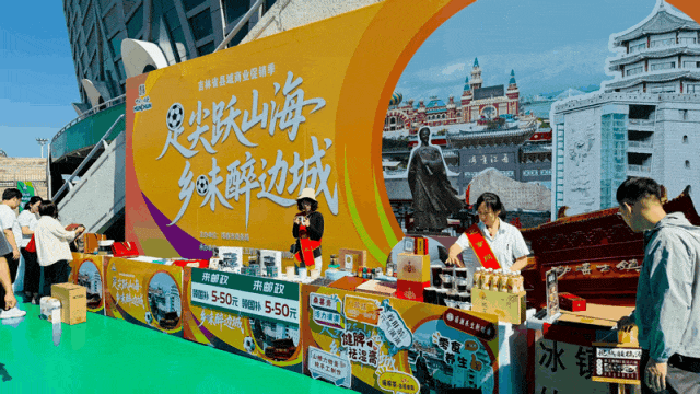 依托足球联赛的高人气,延边州各市县同步推出特色市集,让县域优质产品借赛事平台 “出圈”。珲春市集汇聚 17 家企业的特色产品,鲜活帝王蟹、林下人参、俄罗斯进口商品与非遗艾灸项目同台展示,充分彰显地域特色与跨境贸易优势;延吉市在赛事现场设立 “延之有礼”“跨境电商保税” 两大展示区,百余种商品搭配中国石油 “满 300 元减 20 元” 福利,精准对接观赛群众的消费需求。