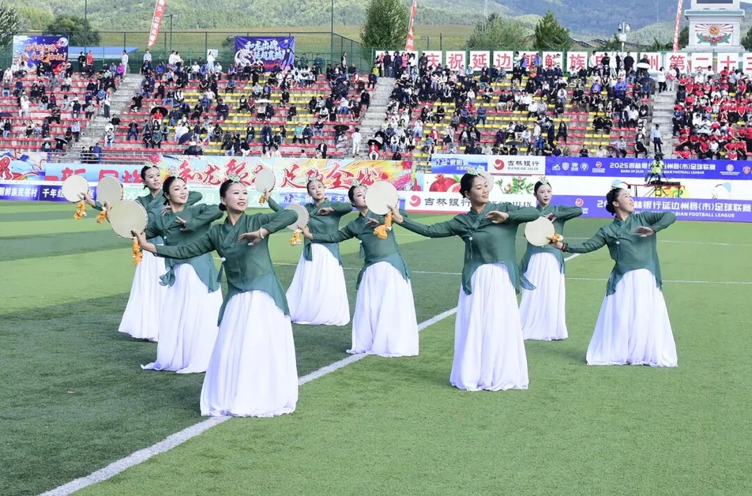 敦化队主场对阵珲春队前,一场充满文化底蕴的预热仪式拉开帷幕:敦化市文化馆带来歌曲串烧《向梦想出发》《超越梦想》,舞蹈《足球阵线联盟》融合现代啦啦操与玩偶踢球元素,提前点燃球场热情;中场休息时,足球宝贝们带来《吉祥敦化》,以活力表演为双方球员加油助威,现场欢呼声此起彼伏。