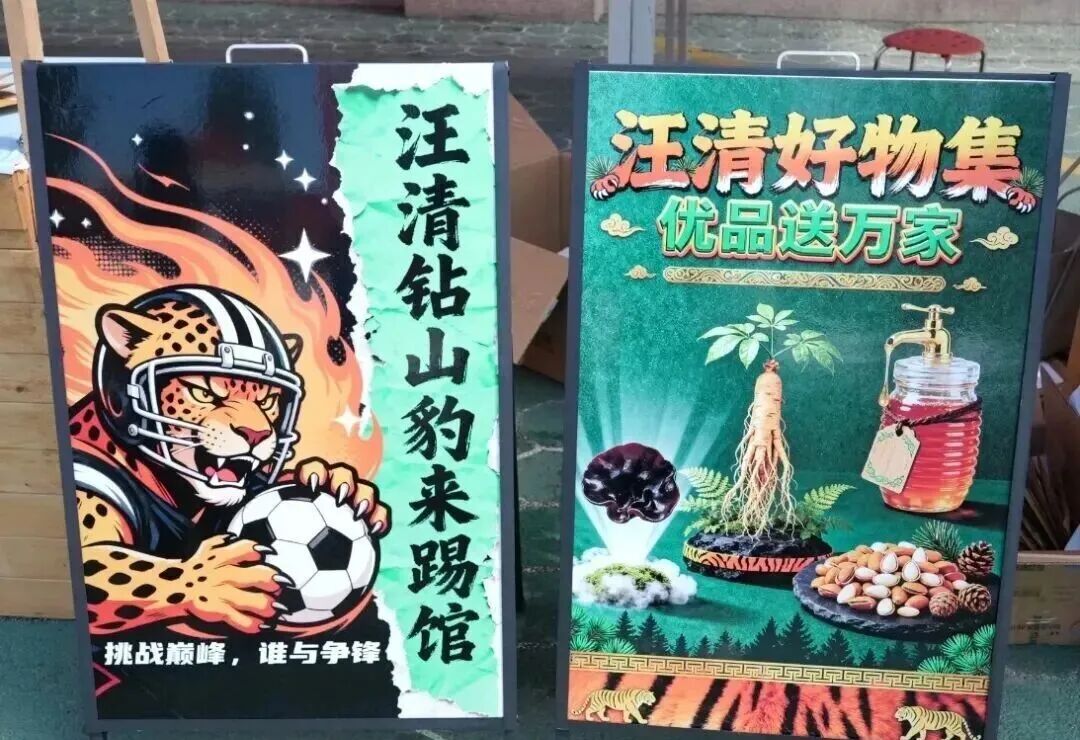 龙井市在足球小镇设立足球主题农产品展销区,划分展销、互动体验、美食探索等多个板块:展销区集中展示冷面、食用菌、特色调料等龙井地标农产品;互动体验区开展“赛事押宝”活动,猜对获胜球队的球迷可获赠良田百世景区门票;美食探索区通过扫码导览,直观推介本地特色餐饮,引导观众“看球+消费”。