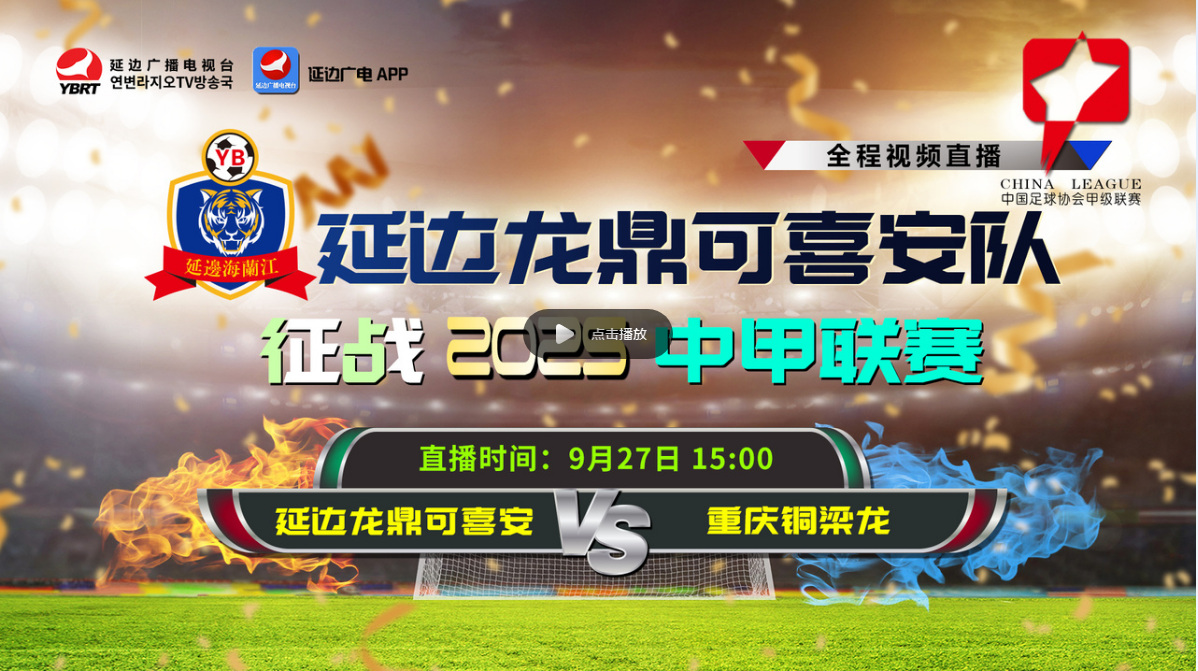 延边龙鼎可喜安队即将迎来主场作战的关键一役!9月27日15时,延边龙鼎可喜安队将在延边体育中心主场迎战劲旅重庆铜梁龙队,延边广播电视台朝鲜语综合频道、延边广电客户端将同步开启现场直播,邀广大球迷共赴这场足球盛宴,锁定屏幕见证绿茵对决。