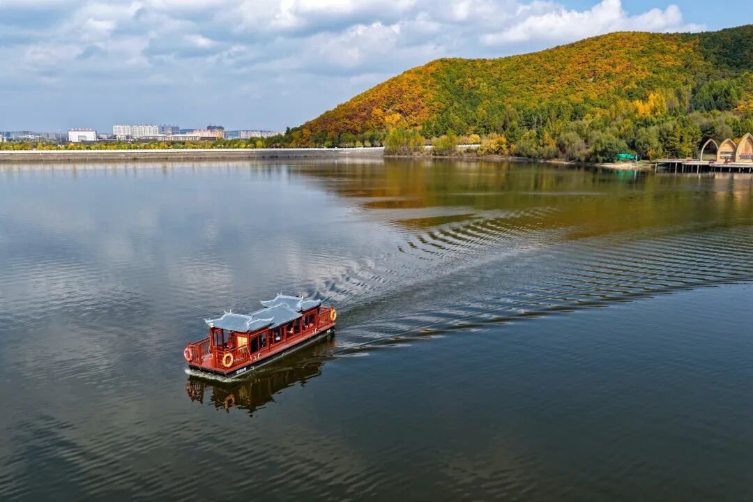 为回馈广大游客,六鼎山文化旅游区还推出专属优惠政策,购买全价门票的游客,凭门票可享受圣莲湖游船票立减10元的福利。不少游客家庭借此机会乘船游湖,在碧波荡漾间欣赏秋日湖光山色,沉浸式享受这场金秋欢乐之旅。