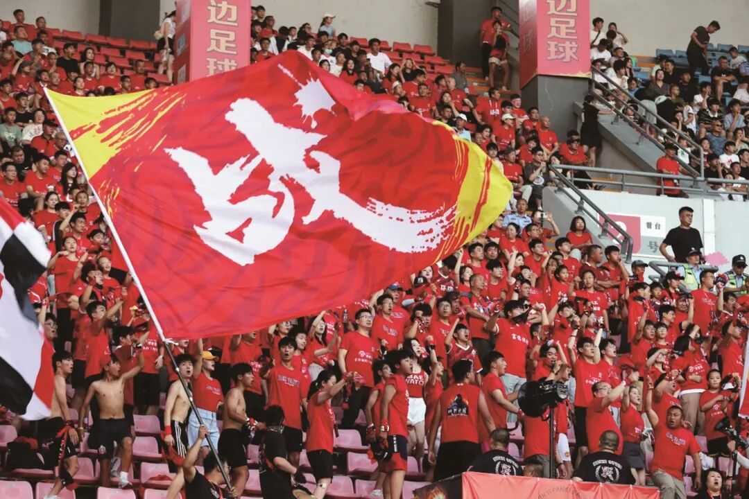 足球赛场上,球迷为延边队加油助威。(延吉市委宣传部供图)