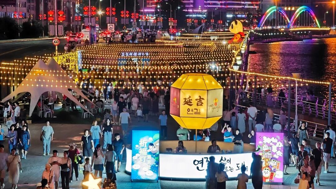 傍晚,布尔哈通河畔热闹起来。人们或是悠闲地散步,或是乘船欣赏延吉美景。河边的广场上,市民们伴随着欢快的音乐跳起舞蹈,彰显热情与积极向上的生活态度。